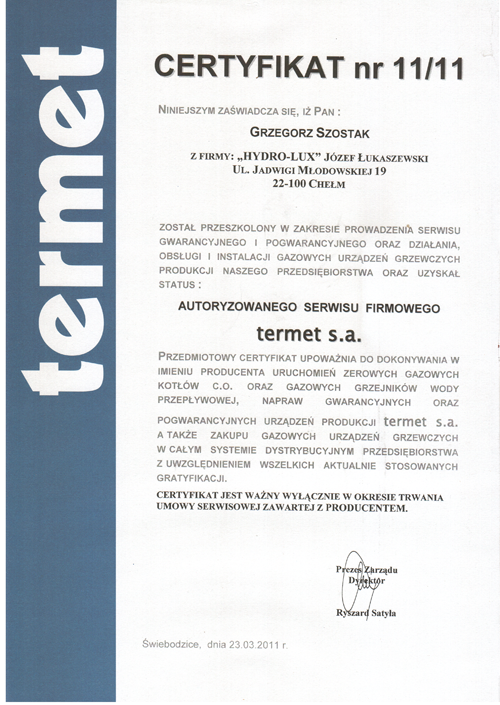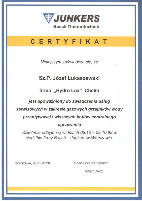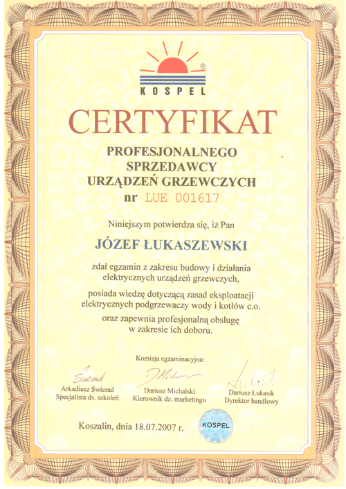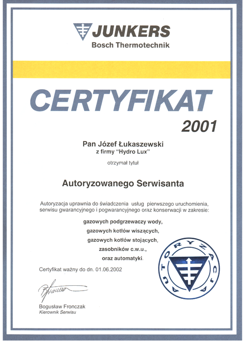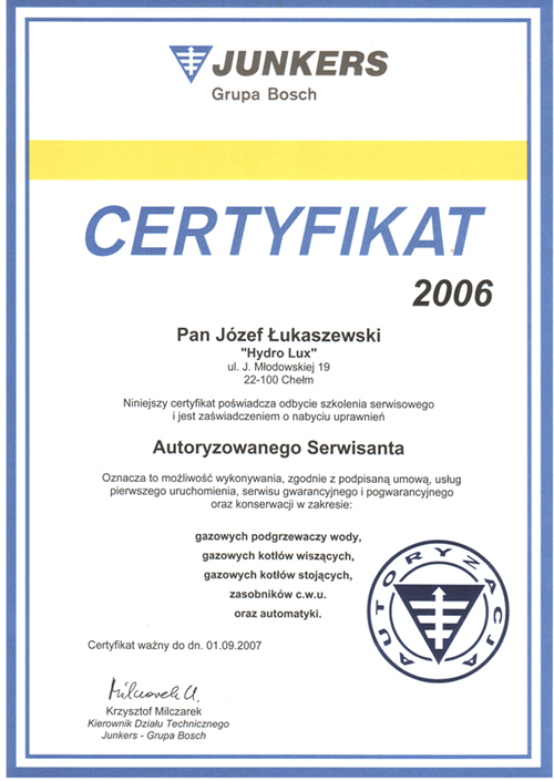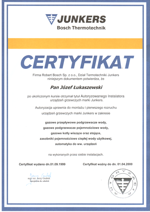 Nazywam się Józef Łukaszewski, specjalizuję się w obsłudze serwisowej wszystkich urządzeń marki Junkers, Buderus, Termet, Ariston jakie funkcjonują na rynku Polskim.