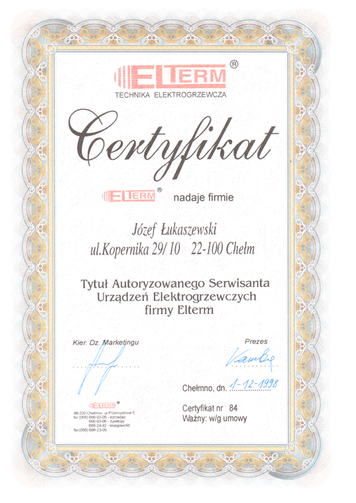 Świadczę usługi w rejonie: Chełm i okolice. Działalnością serwisową zajmuję się od 16 lat. Zdobytą wiedzę i doświadczenie, przy pomocy rzetelnego i indywidualnego podejścia do każdego przypadku staram się przełożyć na satysfakcję klientów/użytkowników naszych urządzeń.