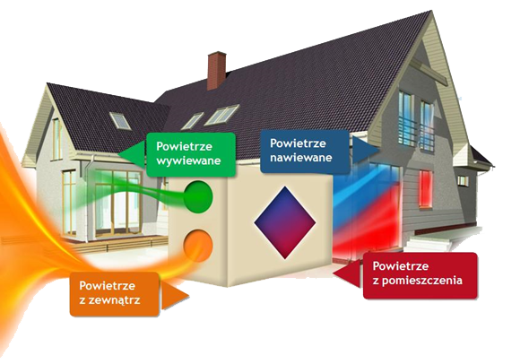 Możemy to uzyskać, dzięki rekuperatorowi (wymiennikowi krzyżowemu), który służy do przekazania ciepła z wydmuchiwanego powietrza do nadmuchiwanego. Sprawność tego typu urządzeń wynosi od ok. 50% do 90%.